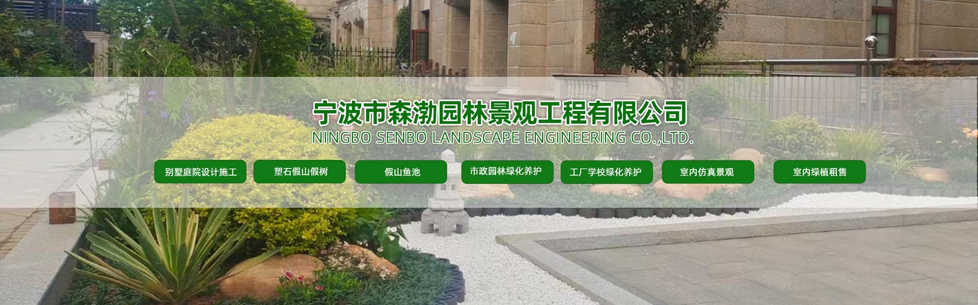 宁波森渤园林景观工程有限公司是一家专注于宁波别墅庭院景观设计,宁波别墅庭院,宁波假山鱼池,宁波园林景观工程等园林景观设计,施工养护为一体的团队。 在精益中成就尚艺,以精细的质量和不凡的视觉体验让人赞叹,其中以中式、日式、欧式、复合式别墅庭院设计和屋顶花园、私家园林、假山鱼池景观设计尤为擅长,是集庭院景观设计施工,苗木种植、苗木产品销售、绿化养护咨询服务为一体的景观园艺公司。自公司成立以来施工案例遍布各地,广受客户赞美。公司凭借创新的设计理念,规范的管理、多年的施工技术以及完善的售后,为客户描绘良好的自然环境、生活环境、宜居环境,让客户有山可依,有水可傍。